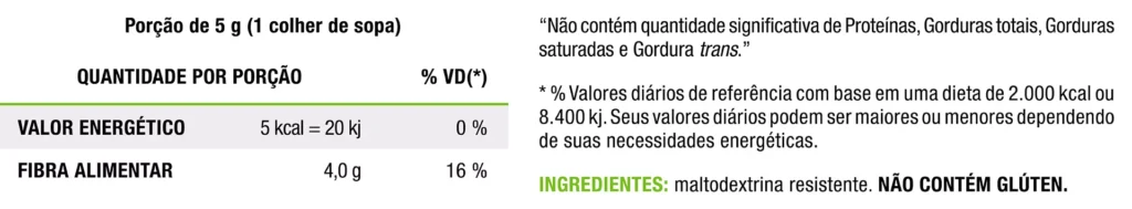Seu ingrediente principal é elaborado de fibra de milho solúvel.